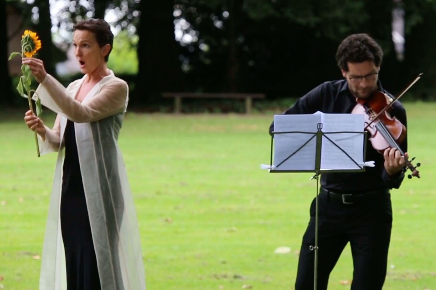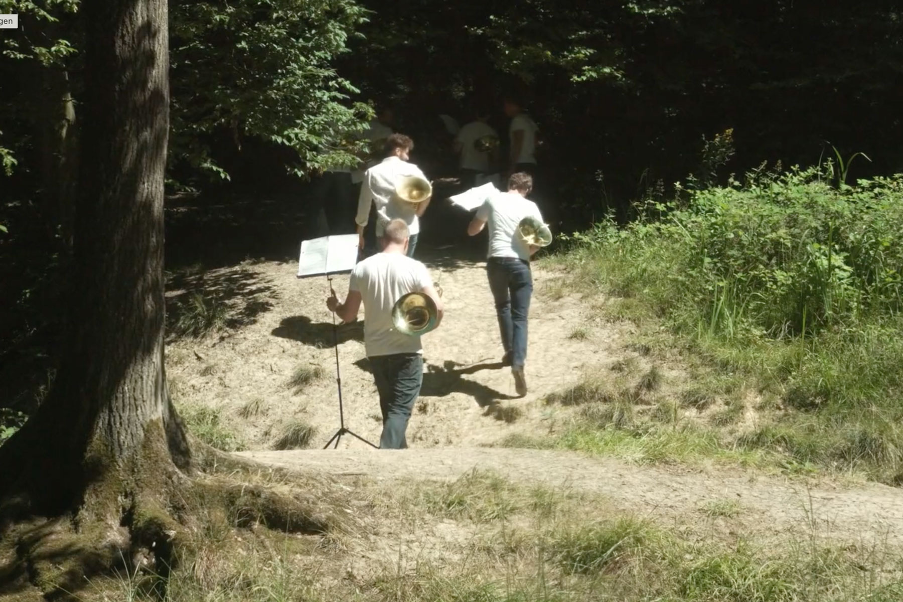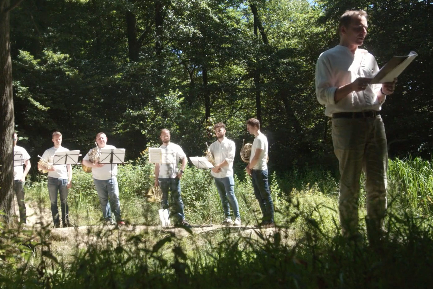 „FUX GEHT RAUS MolekularWagner – Umwege im Hain“. Den Makrokosmos Wagner zersplittert die Sopranistin Annette Robbert in motivische Mikropartikel und lässt sie gemeinsam mit Schauspieler Jakob Walser und der seltenen Formation aus 8 Hornisten hinter den Büschen und Bäumen, den Wegsteinen der Wagner-Verehrer von der Heydt und den Flussläufen aufscheinen – und manchmal auch baden gehen… Annette Robbert, Jakob Walser, Paola Rodilla Martinez, Sander van Dijk, Paolo Mendes, Martin Dickmann, Felix Wilmsen, Quirin Rast, Jonathan Wegloop/Matthias Schmaderer, Ulrich Sulse