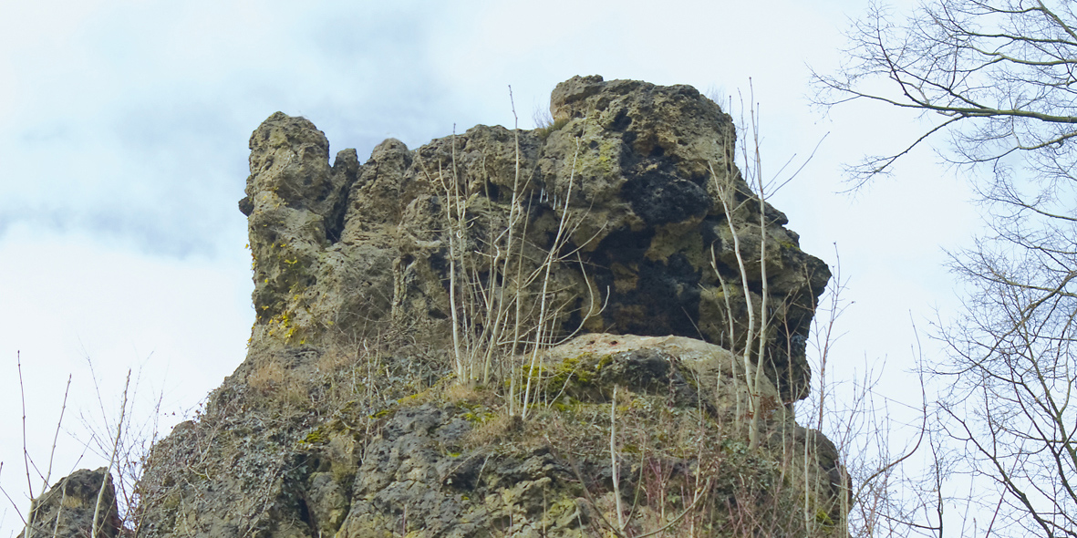 Der markante Dolomitfelsen kam in unsere Bearbeitung im Rahmen der Wahrnehmung des Nördlichen Korallenriffs aus dem Erdzeitalter des Devon, als Wuppertal noch am Meer lag. Mythen und Sagen ranken sich um den Hohenstein.